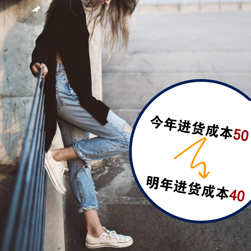 如果你今年这件进价50的话,也许第二年进价就变成40了。