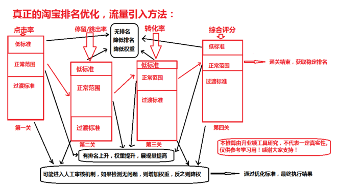 提示:如果过度将仍然会被淘宝系统录入监控系统里等待人工监控,如果有严重作弊嫌疑很容易就会被查出(同理上面)。往往大家玩的流程上来就是刷单,而不是优化前几步,所以部分用户刷单没有效果,没有排名。更有甚至导致被降权,被封店。
