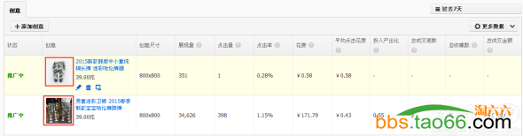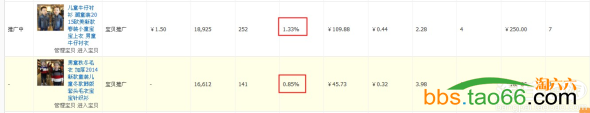 (1)宝贝款式:款式不同造成的点击率是不同的,款式的不同从点击率上直接反映出宝贝的受欢迎程度。一个宝贝是不是适合通过直通车进行推广,可以通过宝贝款式测试点率的方法来实现。下图可以看到第一款的点击率高于第二款宝贝,更适合直通车的推广。