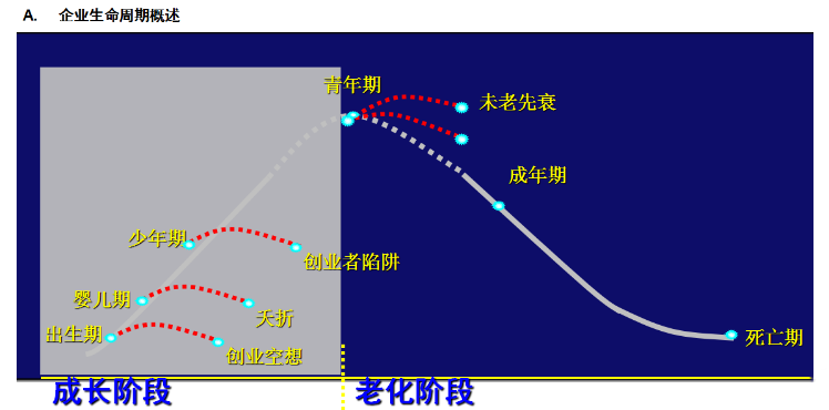 一般描述一个事物的生命周期都是用增长率曲线来表达。看一个企业现在是什么阶段只要看它的增长率就可以了。看下图