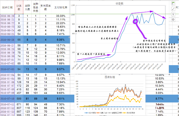 点击增长率、转化增长率、复购增长率、收藏加购增长率这几个增长率是我们优化的方向,并一定每天都能保持增长。比如点击率会随着宝贝销量的增加关键词排名的变更而自动变得更高。