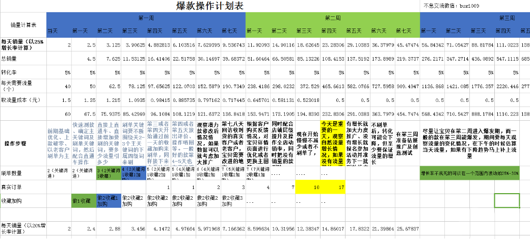 那我们怎么通过增长率来操作爆款呢?看下图爆款计划表。