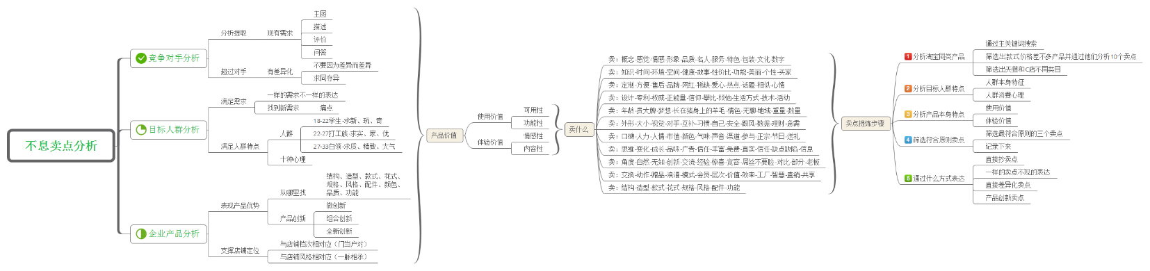 产品描述:现在都是无线的天下,这样主图后面的4张图就更多重要的,而这4张主图就是宝贝的缩小版,如果不能吸引住客户眼光就会直接跳失!主图自然就少不了表现产品的卖点,而卖点的提炼也是打造爆款的关键,那卖点怎么提炼呢?一样有套路,直接看图: