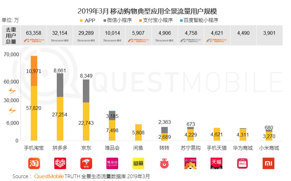 值得注意的是,在下沉市场表现出色的支付宝开始呈现出反哺阿里生态的能力。QuestMobile的报告显示,支付宝小程序为阿里巴巴电商业务板块拓展了用户渠道,手机淘宝的支付宝小程序用户规模已经突破1亿。