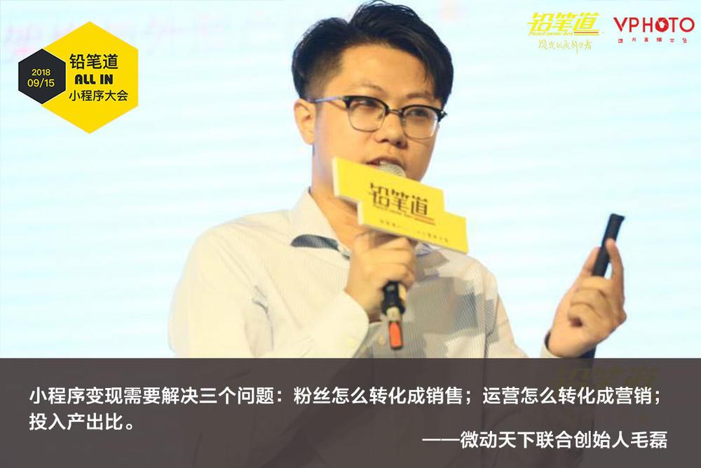 在微动天下创始人毛磊的演讲中,他认为,做企业服务要的是深度和广度,小程序需要参与到企业内部经营和内部管理当中,才能对企业和行业产生真正的价值。