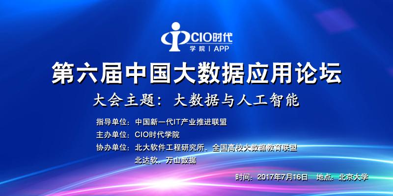 2017年7月16日,由CIO时代学院主办,中国新一代IT产业推进联盟指导,北大软件工程研究所、全国高校大数据教育联盟、北达软、万山数据协办的“第六届中国大数据应用论坛”将于北京大学隆重拉开帷幕。