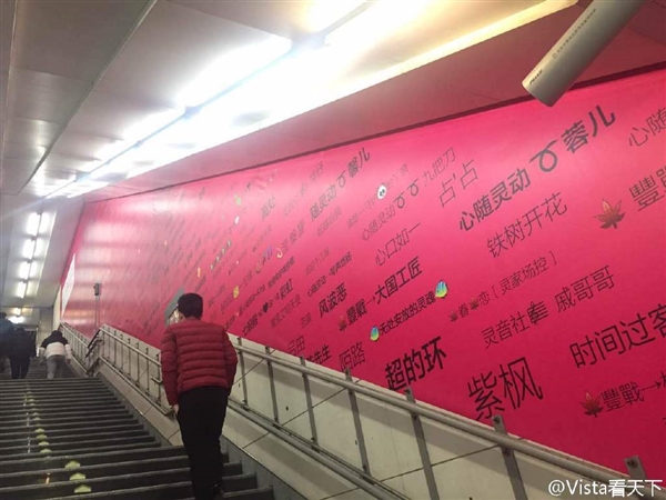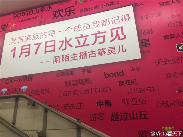 从网友拍摄的照片来看,红色的展板上,写满了这位主播粉丝的ID名字,字号越大的应该打赏的越多吧?