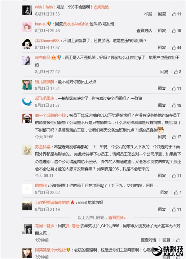 曝58同城实行全员996:姚劲波微博遭员工围攻 |