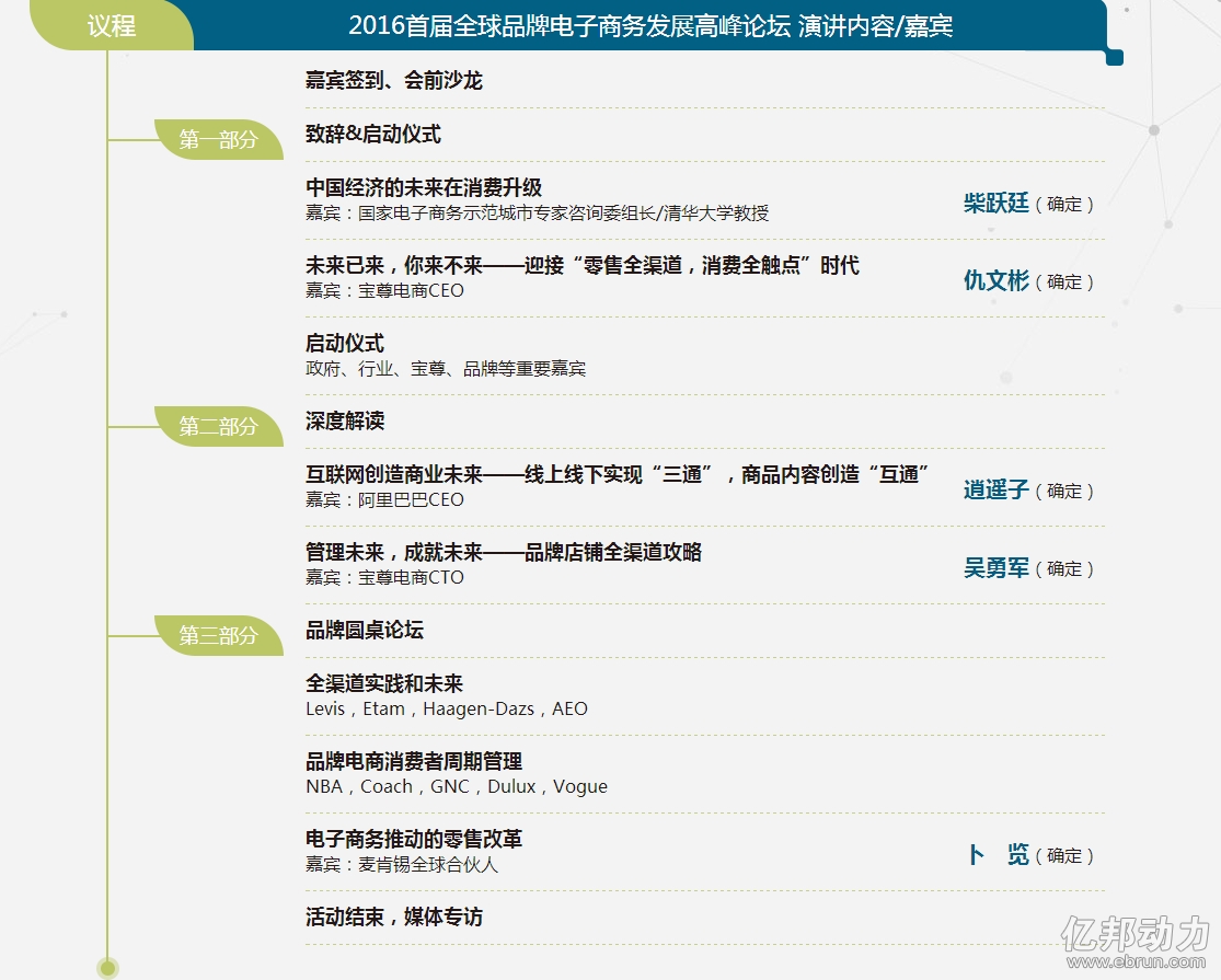 “2016, 站在未来 看世界——首届全球品牌电子商务发展高峰论坛”将于5月11日在上海静安香格里拉举办。此次论坛将秉承高端化,国际化,趋势化的特点,汇聚全球零售品牌领军人物相关政府领导及专家出席,聚焦“零售全渠道,消费全触点”, 让我们共同把握又一个未来。