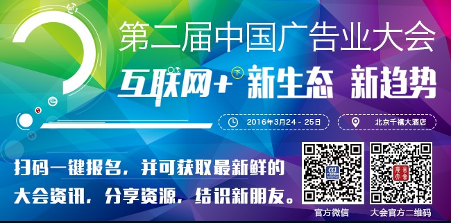 由广告买卖网主办的“第二届中国广告业大会”将于2016年3月24-25日在北京千禧大酒店召开。本届大会针对当前的经济环境和广告行业形势为背景,邀请广告行业相关知名专家,知名媒体人,广告公司领导,知名广告主领导,营销专家等参会,共同探讨传统媒体与新媒体间、跨媒体间、媒体与广告公司间、媒体与广告主间的观点创新和技术变革,为“企业传播和媒体资源与相关思想和技术模式创新上”搭建桥梁。