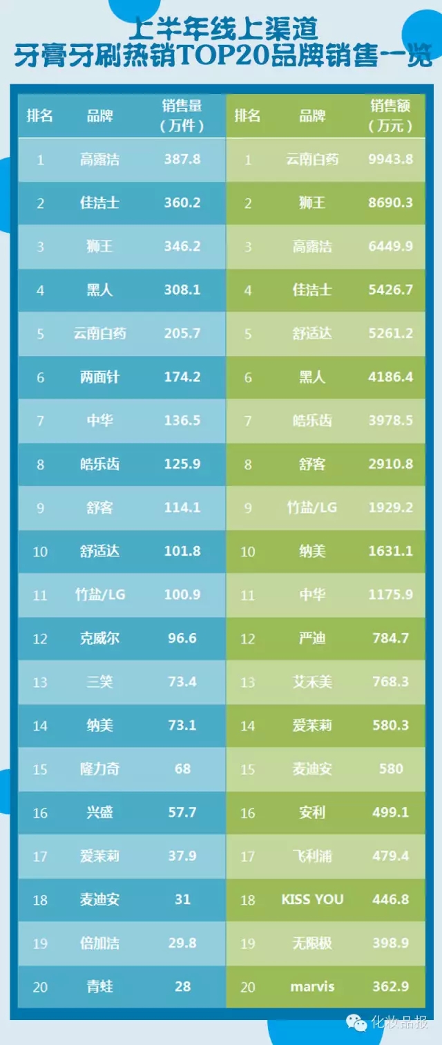 (注:以上数据除牙膏外,包含线上牙刷上半年销售额。)