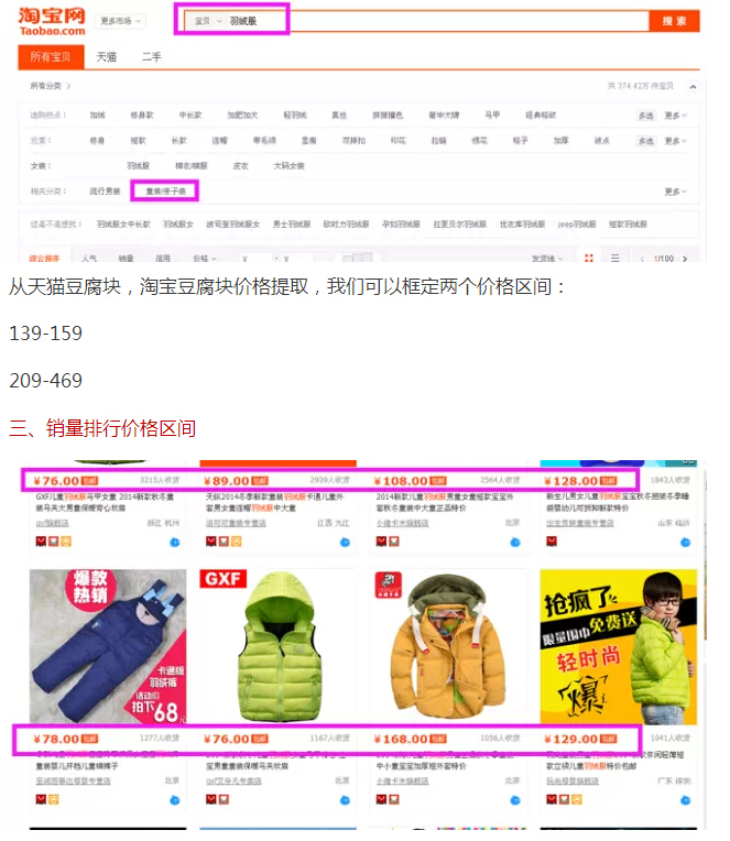 拿童装羽绒服来做例子,我们看下价格如何设定:
