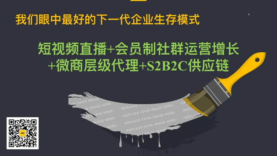 企业的线上销售如何借助这样的一些变化、借助最近最火的短视频和直播达到企业转型的目的,甚至实现业绩倍增?我们眼中,下一个最好的企业生存模型就是这样的一个模式:一定是通过短视频和直播,加上会员制的社群运营增长,再加上层级代理模式,当然重要的是再加上S2B2C的这样的一个供应链。
