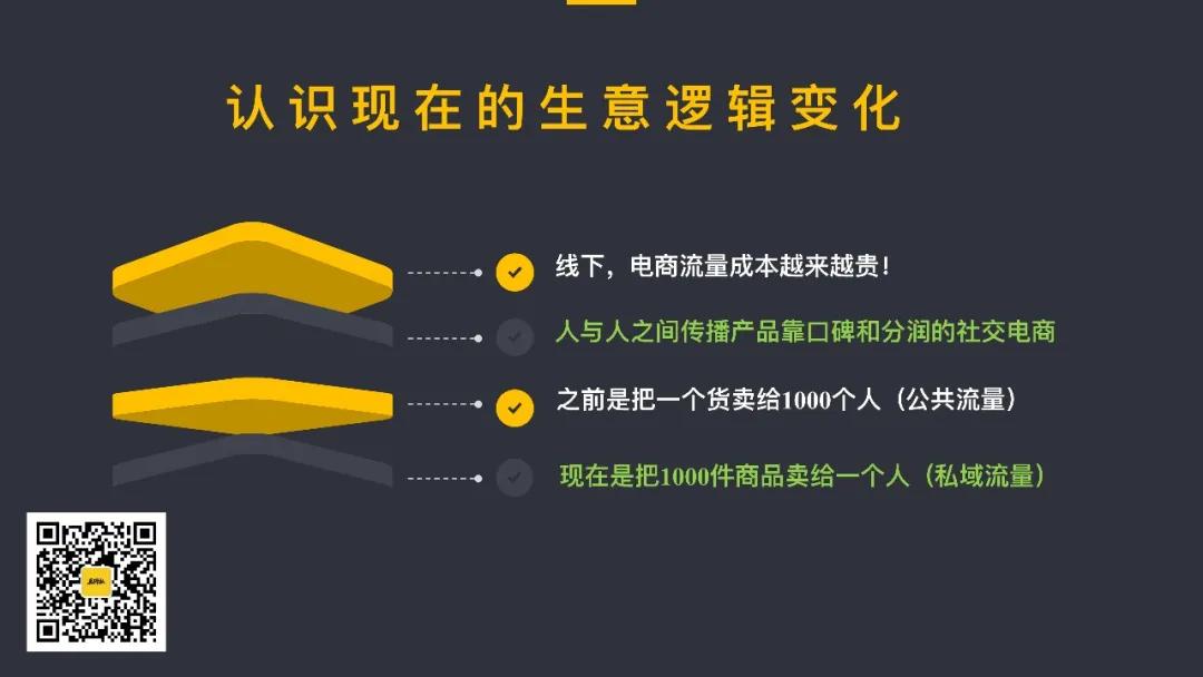 但无论这次疫情来不来,其实企业都应该考虑到中国现在的生意逻辑确实是变化得特别快,我们线下的生意、实体店铺受困于房租、受困于人工成本越来越高,然后做电商、淘宝、京东的这些店铺,广告费、成本、直通车的各种费用也是水涨船高。但同时还有很多社交电商,通过各种社交平台、APP、微商、微信或者各直播短视频,可以直接把货卖出去,又赚的风生水起。