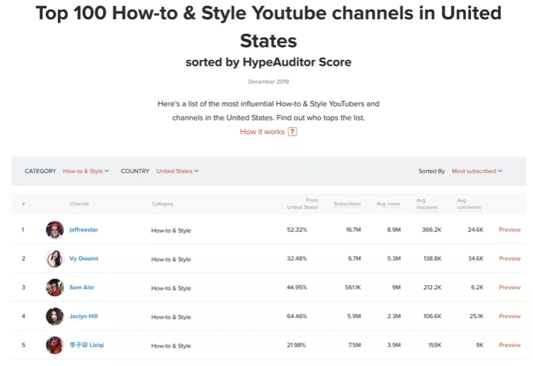 在“How-to&Style(如何做&生活方式)”品类下,综合粉丝数、好评数、互动等各类数据,李子柒在美国的综合影响力排行,高居第五。