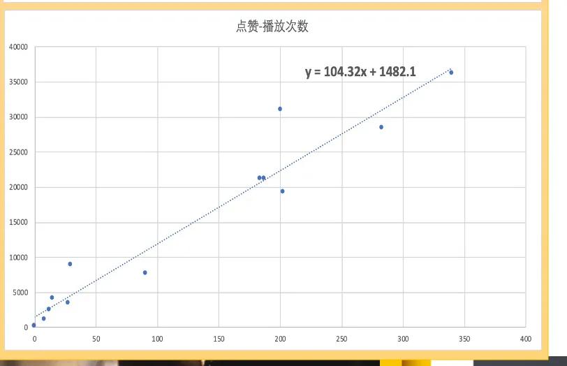 上面这图是我一条视频点赞和播放之间的关系,我拉了公式出来,还有很多没拉公式的,趋势也一样