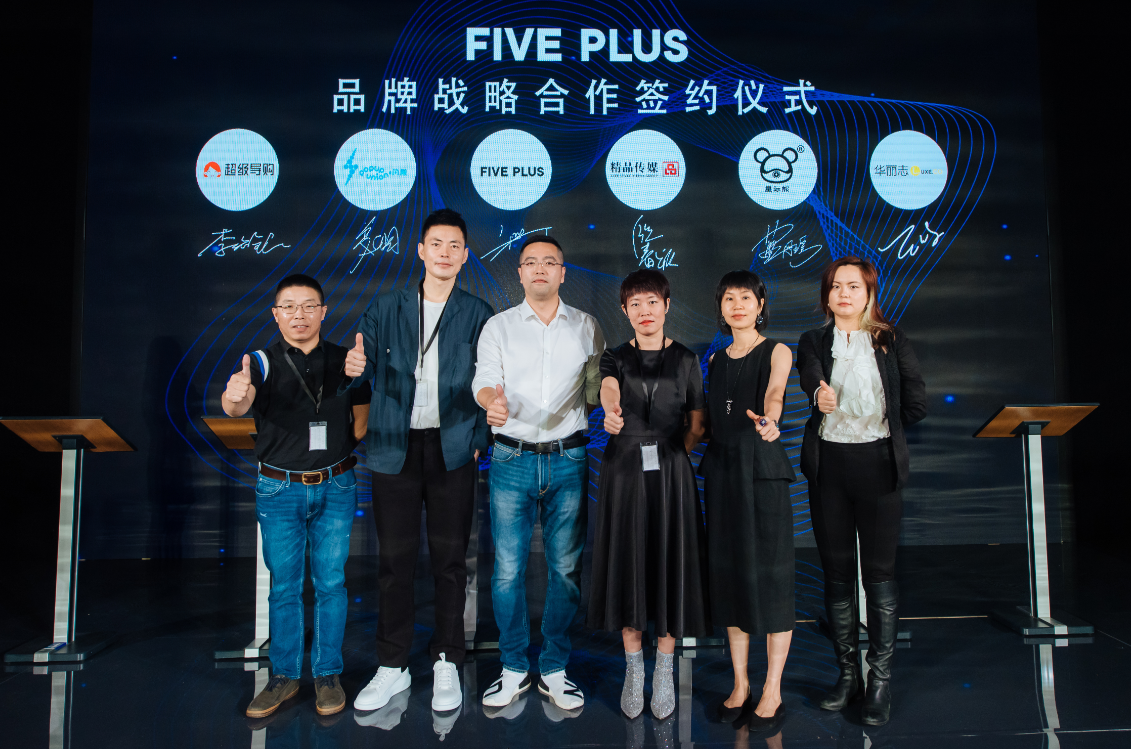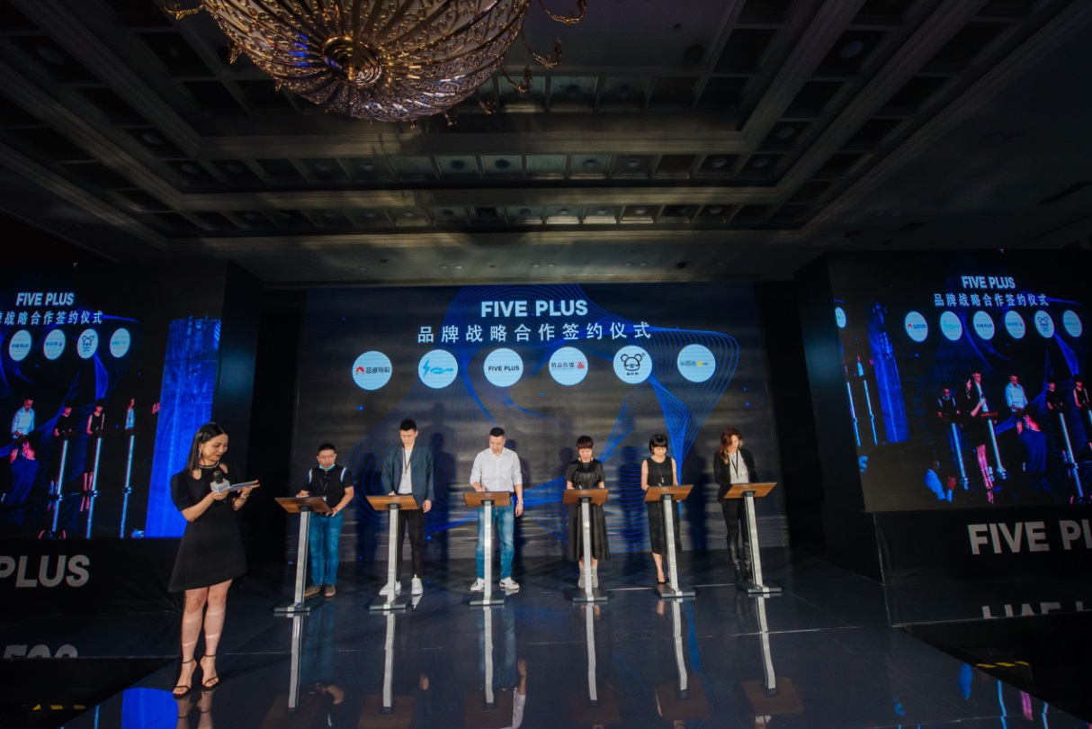 在本次发布会上,FIVE PLUS邀请到各行业优秀品牌代表到场,举行了隆重的战略合作签约仪式。与华丽志、广州永骏星际熊投资有限公司、精品传媒、闪殿、超级导购正式签署战略合作。以强强联合,推动经营模式的创新。