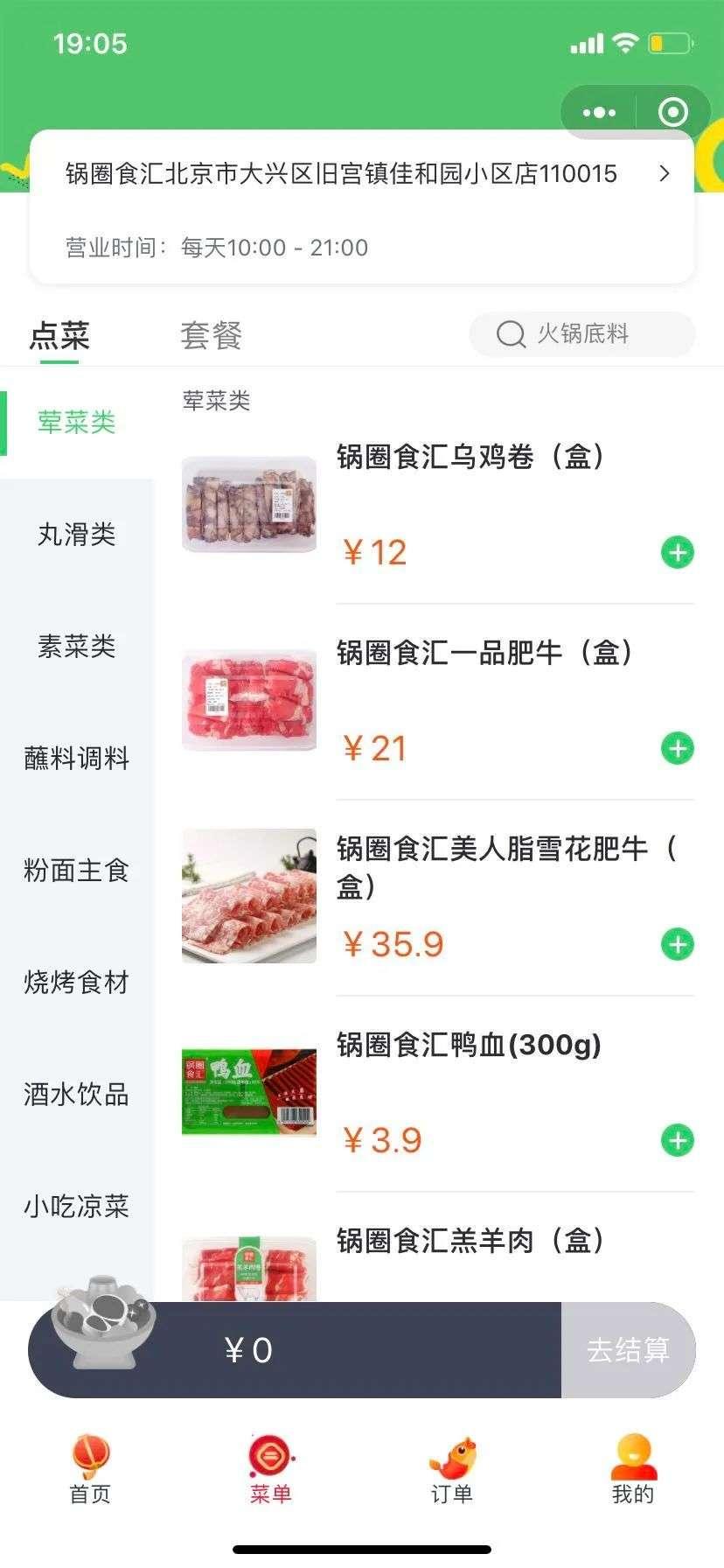 《灵兽》登陆锅圈食汇商场微信小程序发现,食材价格比较亲民,羊牛肉卷一盒价格为18元上下,素菜价格为6元上下。