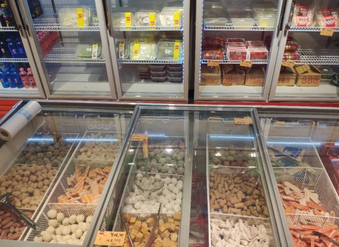 通过走访火锅食材的超市,《灵兽》发现不到百平米的门店内,铺满冻柜,数百个SKU,主要提供火锅、烧烤和日常用的食材以及预制菜品,从火锅底料、蘸料到涮品皆有。同时,消费者也可以在线上平台下单购买。