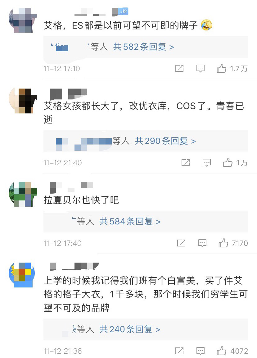 清仓大甩卖?消息一出,网友迅速炸开了锅。“一波回忆杀!上学的时候我记得我们班有个白富美,买了件艾格的格子大衣,一千多块,那时是我们穷学生可望不可及的品牌,因为款式实在很好,颜色也漂亮。”一位网友在微博这样写道,随后引发大量跟帖。