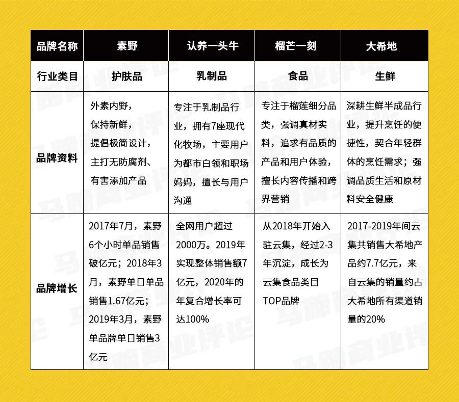 将这些新消费品牌进行对比,不难发现无论是“生于云集”还是“长于社会”,他们都拥有着不少贯通之处: