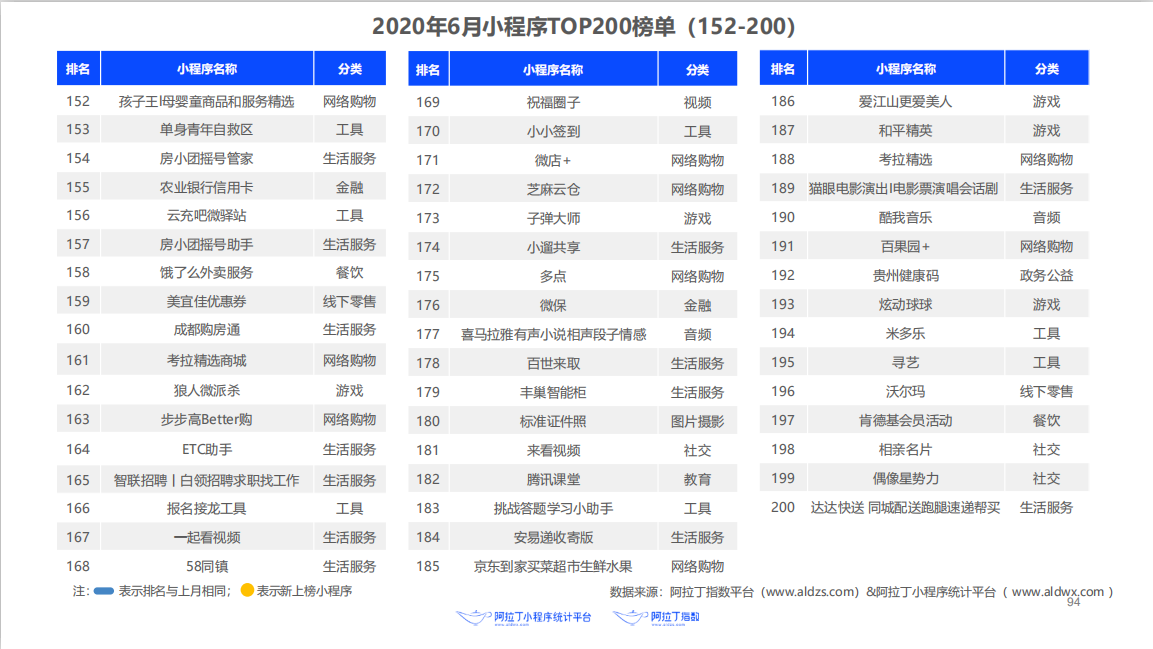 对比2019年6月TOP200上榜小程序,今年6月,游戏、视频领域上榜小程序数量出现了大幅下滑,与此同时,生活服务类、政务类、网络购物类小程序出现了较大上涨。