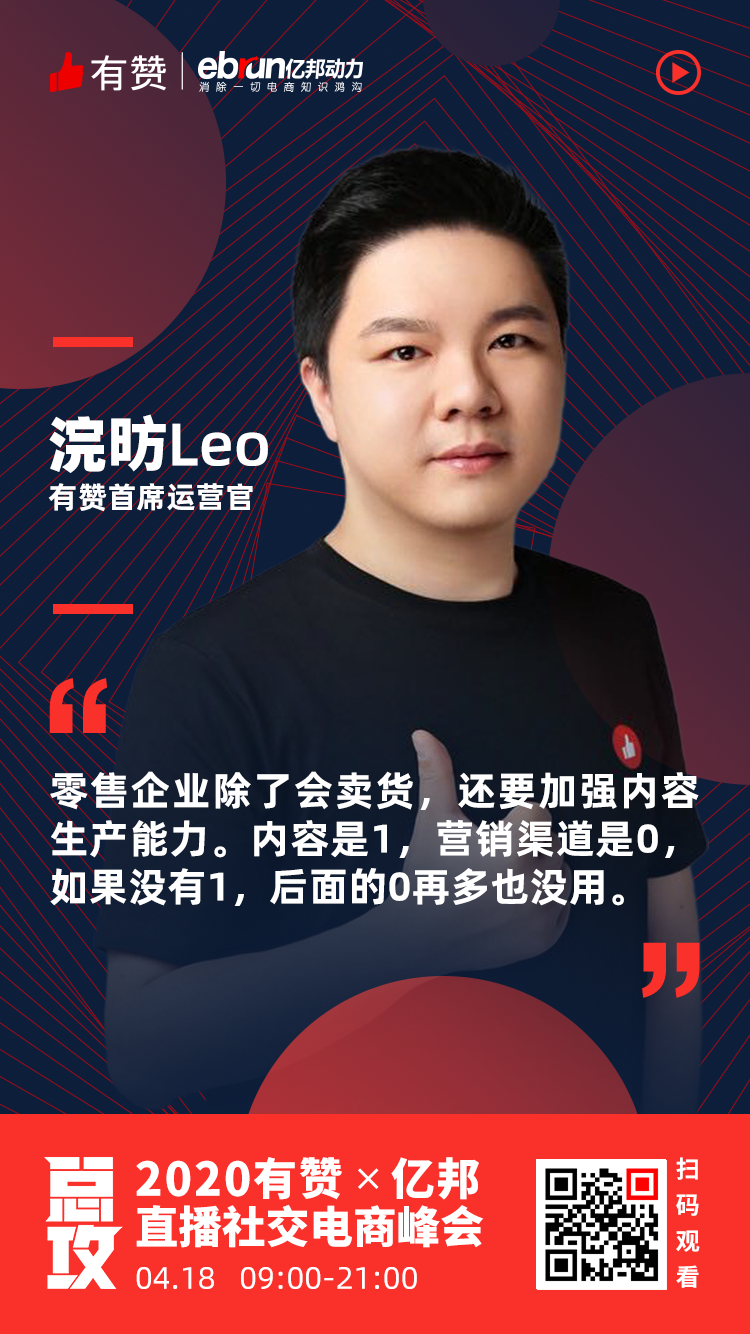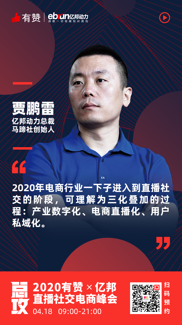 【亿邦动力讯】春暖花开,万物复苏。企业被迫生长出来的战略组织调整能力、数字化能力、私域社交部署能力、店铺导购直播能力已经得到全面释放。昨日,亿邦动力用一场12小时不间断的直播社交电商峰会,召集30余位行业大佬向疫情发起最后的“总攻”,一起寻找企业穿越新周期的秘密。