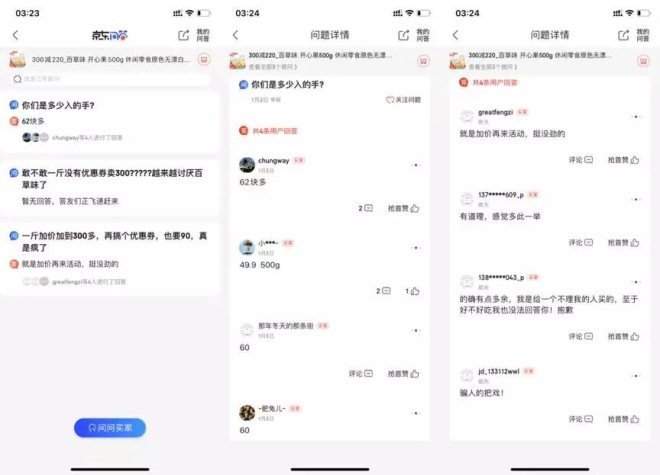 百草味京东品牌旗舰店这么做,并不是第一次,而且也并非事过了无痕。京东问答记录了下来,有60元入手的,有49.9元入手的,还有一段时间搞了优惠券也要90元,更有人直指这是“骗人的把戏”。