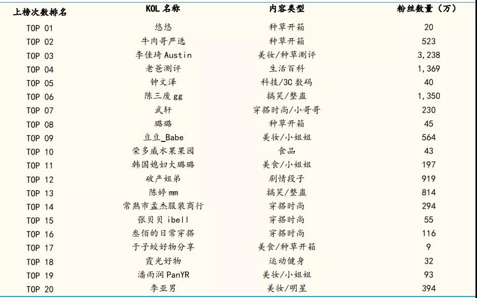 在抖音的TOP 20销售达人里40%的达人粉丝量低于百万,粉丝量并不决定销售量。在30日抖音达人畅销榜账号中,我们发现诸如李佳琦Austin、破产姐弟等内容型账号带货界的扛把子。粉丝量并不决定销售量,好内容+直播,以及过关的产品品质,是KOL与粉丝建立起“强信任”纽带的关键。TOP 20销售大人中8个粉丝低于百万,但带货能力仍然非常出众。持续发布种草开箱类视频,将好物安利给有需求的用户,提升转化率成为中腰部主播成为达人的首选。