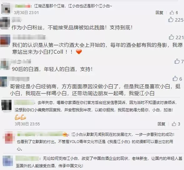 针对媒体的“江湖再无江小白”的主题报道,许多消费者都在江小白官方微博下留言,“江湖还是那个江湖,江小白也还是那个江小白。”