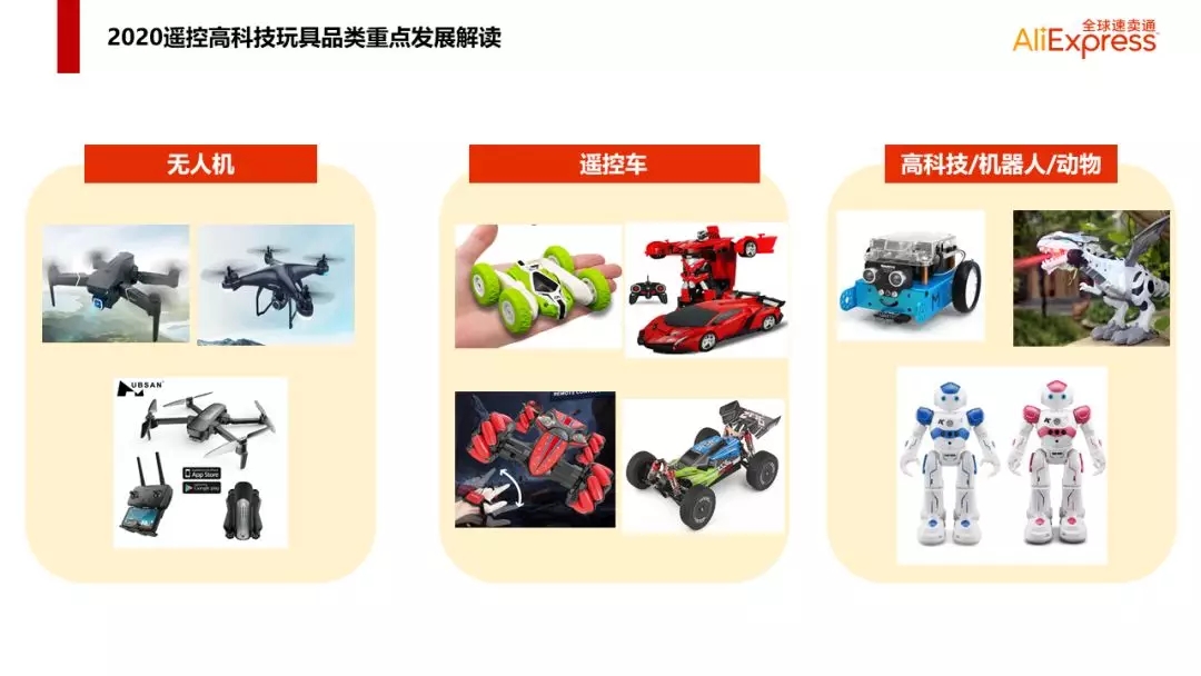 根据2019年玩具行业走势以及重点国家用户需求,速卖通玩具行业在2020年将重点发展以下品类,并面向全体商家进行招商补品。