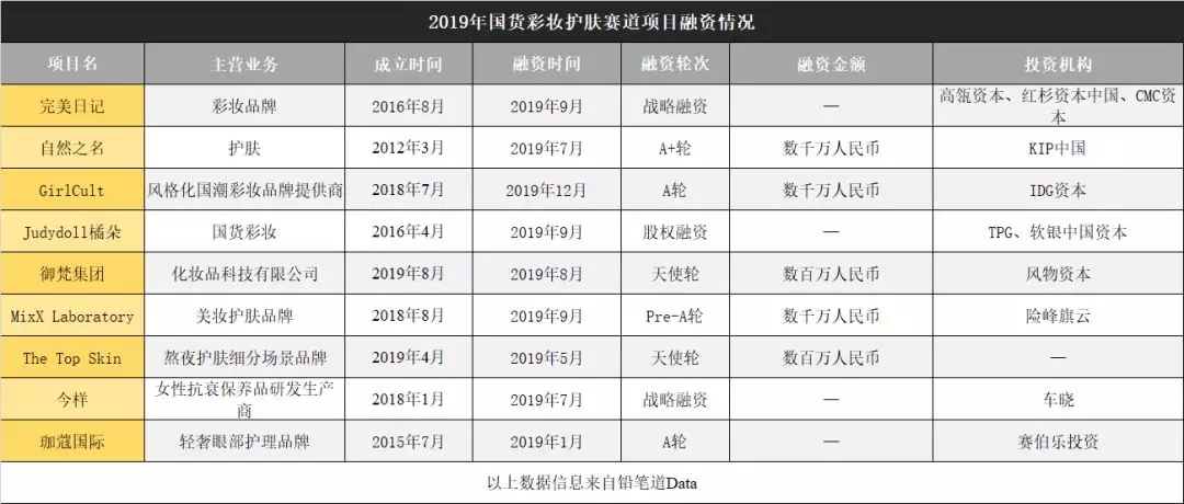 据消费Z时代不完全统计,今年有9家美妆品牌获得融资,资方包括高瓴资本、红杉资本中国、KIP、软银中国等多家一线机构。