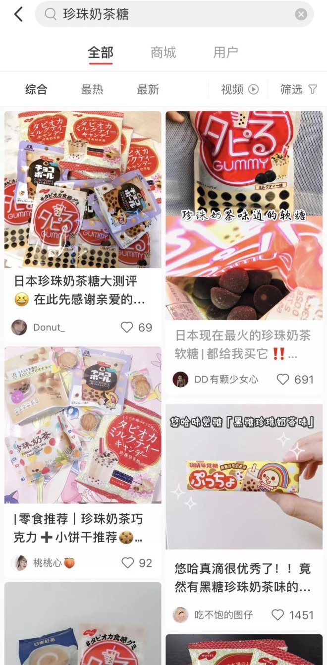 2019年,一款珍珠奶茶口味的糖果在日本大火,打开小红书,有关“种草”的笔记就有上百篇。