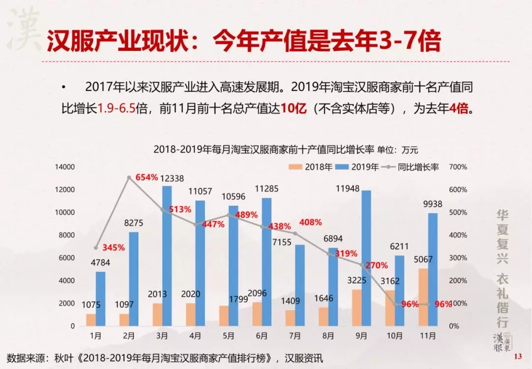 根据央视财经报道,目前全国汉服市场的消费人群估算已超过200万,产业总规模约为10.9亿元,汉服的需求增长带来了整个市场的火爆。