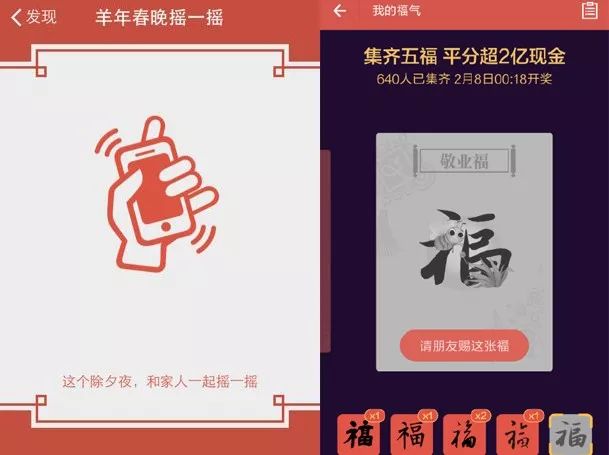 ▲微信“摇一摇”和支付宝“集五福”