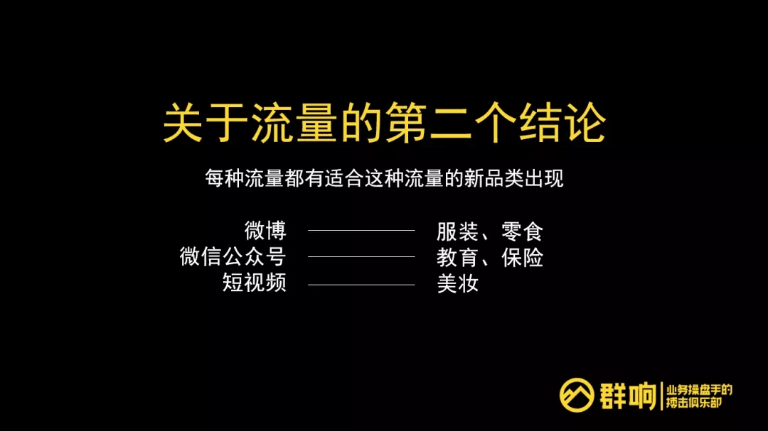 第二个结论是,每种流量都有适合这种流量的新品类出现