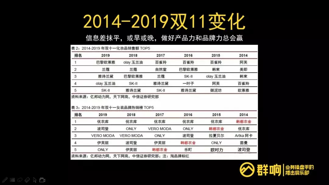 我们看一下,这是14到19年双11的变化