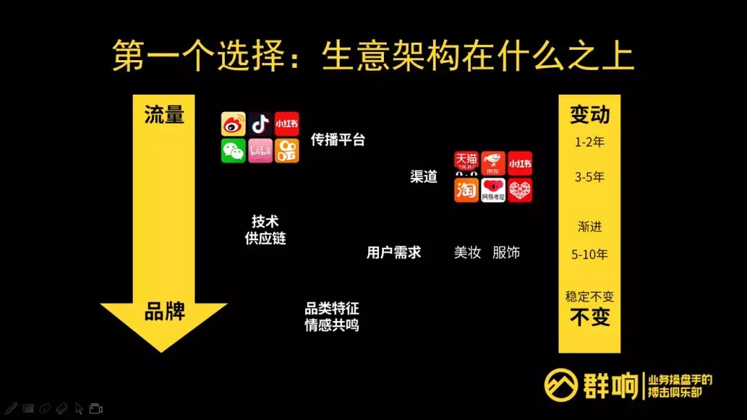 这和流量生意不分好坏,只是你选择了不同的架构方式,你就要有不同的转换赛道的能力,或者变化的方式,来应对这件事情。
