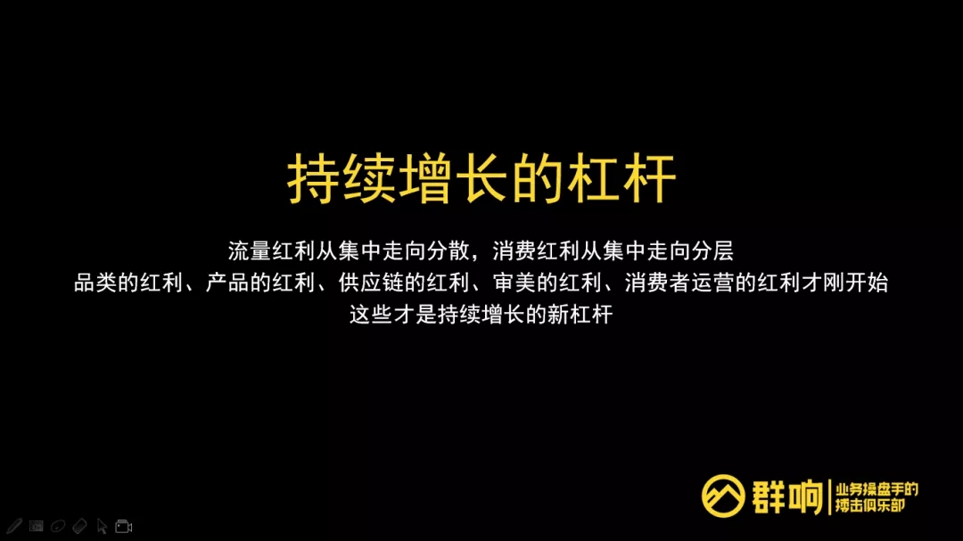 持续增长的杠杆:品类的红利、产品的红利、供应链的红利、产品的红利、审美的红利才刚刚开始,这都是持续增长的新杠杆。