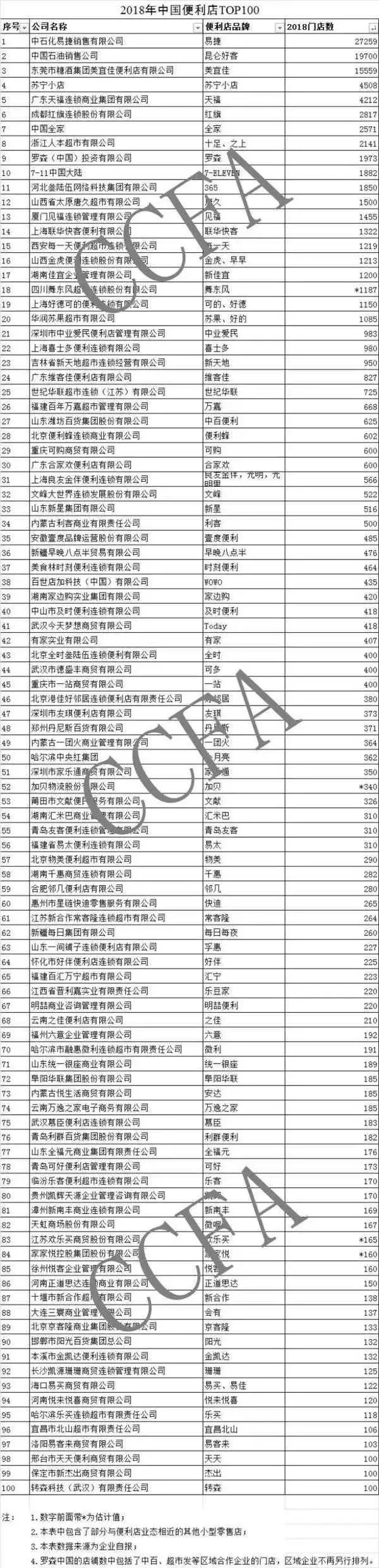 TOP100榜单显示:中石化易捷(27259家)、中国石油昆仑好客(19700家)、美宜佳(15559家)分别位列榜单前三甲。外资品牌中,全家计划到2024年在我国实现开设一万家门店;7-Eleven则表示每年的开店速度希望能达到30-40家门店,向二三线城市慢慢渗透。