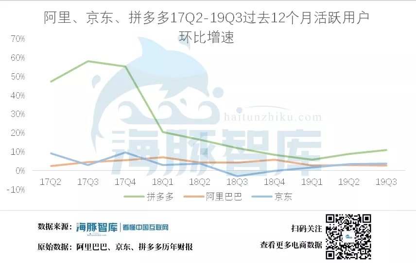 几年前,随着移动端购物成为一种习惯,各个平台之间的流量争夺战开始进入到白热化阶段。然而随着流量红利见顶,连阿里和京东这种巨头的用户增速都开始走下坡路。然而就在这时,以社交为突破口的拼多多以燎原之势迅速崛起,如探囊取物般从其他平台的虎口中夺取到了大批新用户。