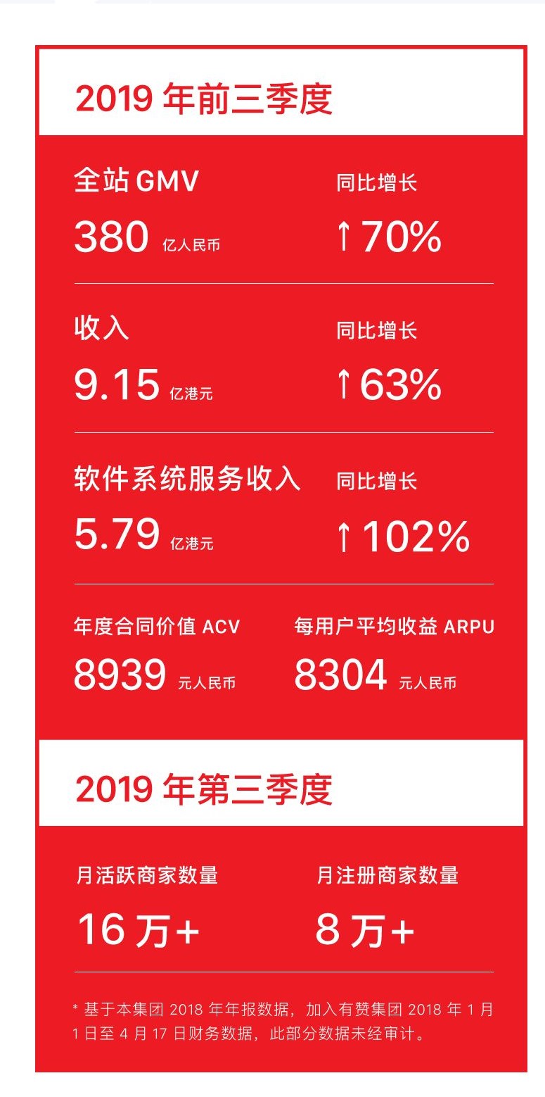 有赞前三季度GMV达380亿 上半年商家在快手成交10亿元![]() |