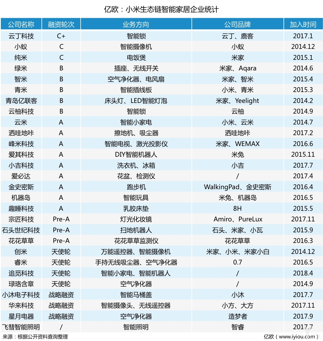 亿欧曾经整理了小米生态链中,主攻智能家居方向的28家企业,虽然其中有半数以上的产品并没有冠以“小米”或者“米家”的品牌,但强大的生态系统实则为小米物联网平台拓宽边界。