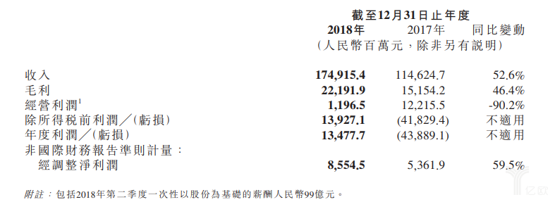 昨日下午,小米公布了上市以来的首份财报。数据显示,2018年小米营收达到1749亿元,同比增长52.6%,经调整后净利润为85.55亿元,同比增长59.5%。