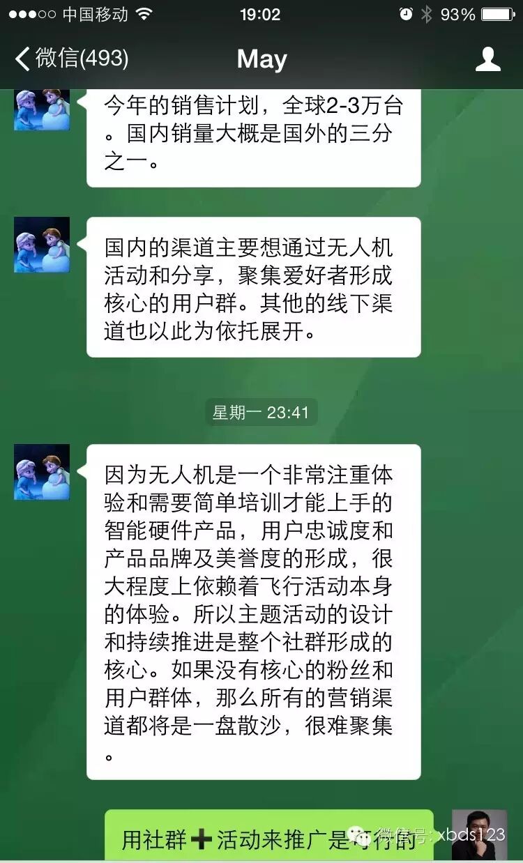 无独有偶,前天有位倚天盟会员阿MAY找到无忌哥,说她去年投了一家深圳的无人机厂家,之前是做欧美市场的,今年想打自己的品牌,进军国内市场。想通过社群营销及活动推广来传播品牌、开拓种子用户。?