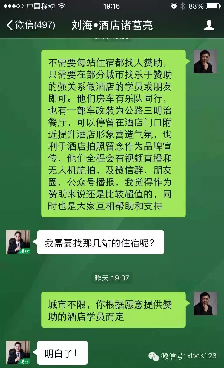 还能不能有更多的礼物?不想一天到晚苦逼的挤房车住帐篷?好商量,让我们把住的问题也解决掉。我们找到长沙的会员刘海老师,他是知名的酒店管理培训导师,也是国内最大的酒店管理社群联合创始人,委托他推介沿途各地的酒店赞助商。