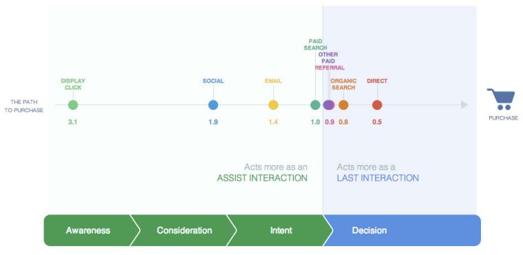 媒体情报公司Aggregate Knowledge在最近提出了这一观点,但它不是第一个。早在去年和今年5月,Adobe就表达过相同的看法。Google给这一论证提供了一些确切数据:根据对美国使用了电商跟踪的Google分析账户的调查,Google发现除点击显示之外,社交网站是人们开始在线购物时最常用的渠道,它是作为一个购物帮助而存在的,而不是最后的下单渠道。另一个人们在线购物旅程之初使用的渠道是什么?email。直接搜索和自然搜索才是最后下单时最常用的渠道。