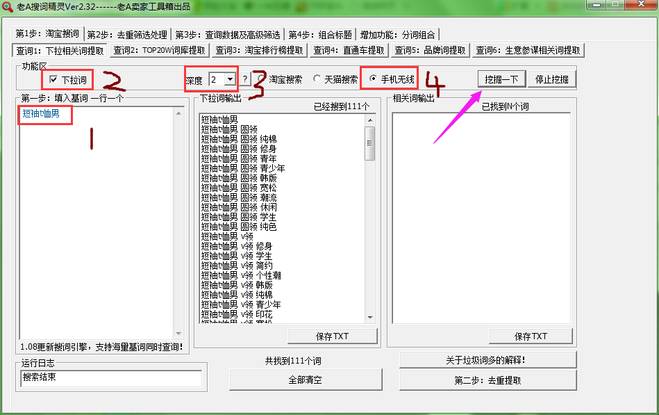 三、1)打开老A工具箱里的?“老A新版淘词精灵“把相关词放到红框里(没有老A账号的可以问我借你用,无伤大雅!)
