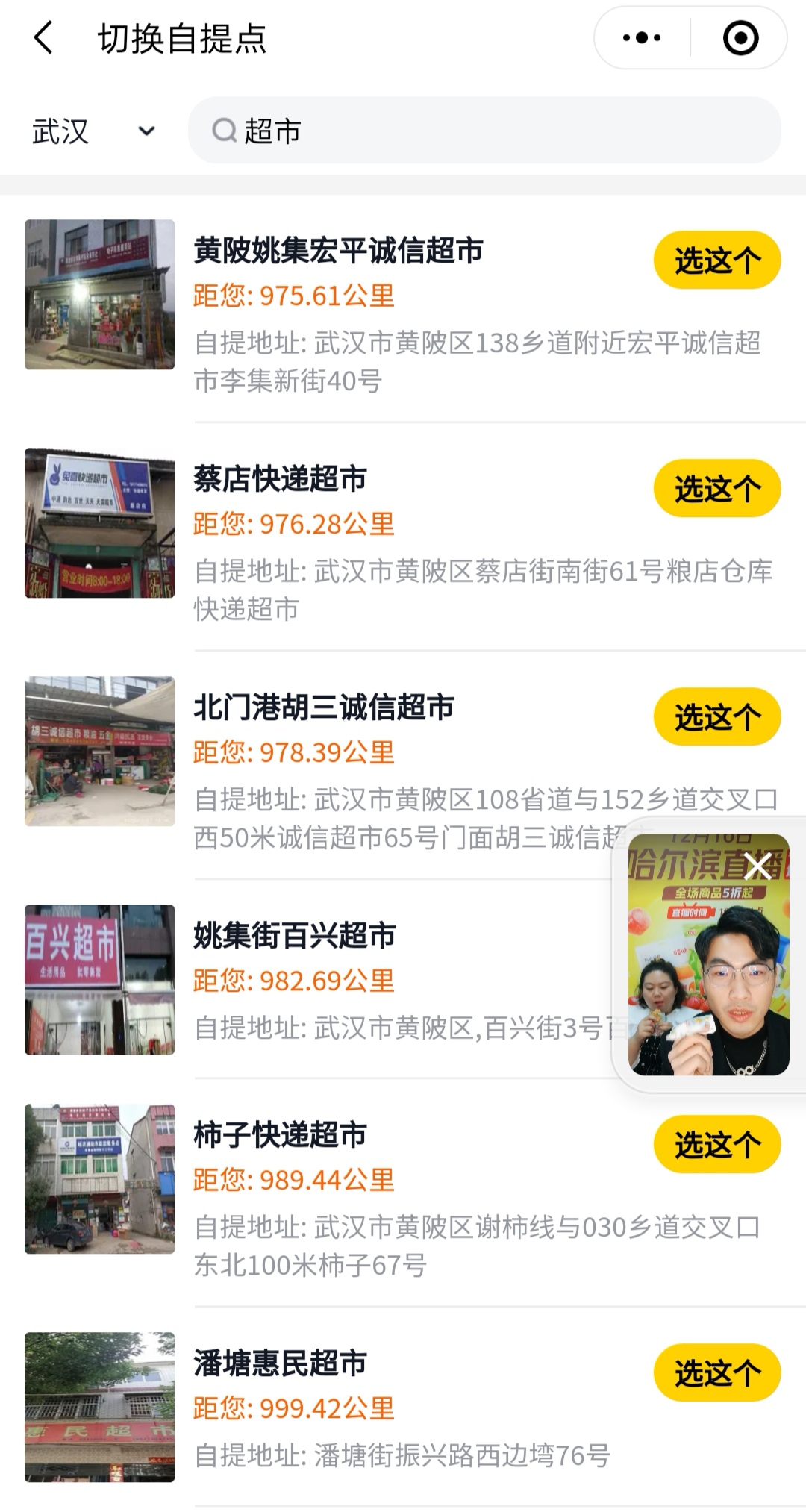 当用户允许小程序获取当前所在位置后,系统将根据用户定位推荐附近社区的门店自提点,实现“今日下单,次日自提”。