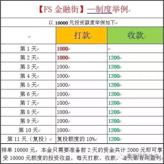 制度举例:排单10000元,本金只需要准备前2天的资金共计2000元即可;